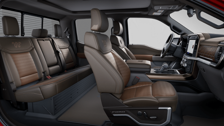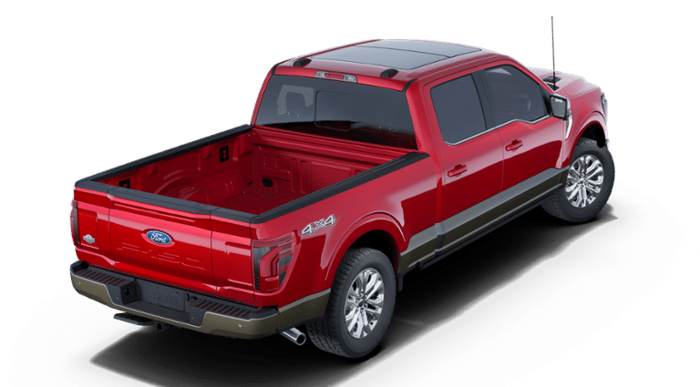 2025 Ford F-150 King Ranch 3.5L V6 EcoBoost 10-Speed Automatic 4WD 4D SuperCrew Rapid Red Metallic Tinted Clearcoat 4WD, 14 Speakers, 4-Wheel Disc Brakes, ABS brakes, Adjustable pedals, Air Conditioning, Alloy wheels, AM/FM radio: SiriusXM with 360L, Auto High-beam Headlights, Auto tilt-away steering wheel, Auto-dimming door mirrors, Auto-dimming Rear-View mirror, Automatic temperature control, Brake assist, Chrome wheels, Compass, Delay-off headlights, Driver door bin, Driver vanity mirror, Dual front impact airbags, Dual front side impact airbags, Electronic Locking w/3.55 Axle Ratio, Electronic Stability Control, Emergency communication system: SYNC 4 911 Assist, Equipment Group 601A High, Front anti-roll bar, Front Bucket Seats, Front Center Armrest, Front dual zone A/C, Front fog lights, Front License Plate Bracket, Front reading lights, Front wheel independent suspension, Fully automatic headlights, Garage door transmitter, Genuine wood dashboard insert, Heads-Up Display, Heated door mirrors, Heated front seats, Heated rear seats, Heated steering wheel, Illuminated entry, Internet access capable: FordPass Connect 5G, King Ranch Multicontour Leather Bucket Seats, Leather steering wheel, Low tire pressure warning, Memory seat, Navigation system: Connected Navigation, Occupant sensing airbag, Outside temperature display, Overhead airbag, Overhead console, Panic alarm, Passenger door bin, Passenger vanity mirror, Pedal memory, Power door mirrors, Power driver seat, Power moonroof, Power passenger seat, Power steering, Power windows, Radio data system, Radio: B&O Unleashed Sound System by Bang & Olufsen, Rain sensing wipers, Rear reading lights, Rear seat center armrest, Rear step bumper, Rear window defroster, Remote keyless entry, Retractable Rear Center Step, Security system, Speed control, Split folding rear seat, Steering wheel memory, Steering wheel mounted audio controls, SYNC 4 w/Enhanced Voice Recognition, Tachometer, Telescoping steering wheel, Tilt steering wheel, Traction control, Trip computer, Turn signal indicator mirrors, Variably intermittent wipers, Ventilated front seats, Voltmeter, Wheels: 20 Chrome-Like PVD, 4WD. Price includes: $300 -