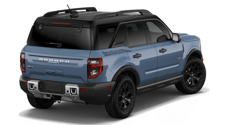 2026 Ford Bronco Sport Badlands EcoBoost 2.0L I4 GTDi DOHC Turbocharged VCT 8-Speed Automatic 4WD 4D Sport Utility Azure Gray Metallic Tri-Coat 4-Wheel Disc Brakes, 6 Speakers, ABS brakes, Air Conditioning, Alloy wheels, AM/FM radio: SiriusXM with 360L, AM/FM Stereo, Apple CarPlay/Android Auto, Auto High-beam Headlights, Auto-dimming Rear-View mirror, Automatic temperature control, Brake assist, Compass, Delay-off headlights, Driver door bin, Driver vanity mirror, Dual front impact airbags, Dual front side impact airbags, Electronic Stability Control, Emergency communication system: SYNC 4 911 Assist, Exterior Parking Camera Rear, Ford Connectivity Package (1-Year Included), Four wheel independent suspension, Front anti-roll bar, Front Bucket Seats, Front Center Armrest, Front fog lights, Front reading lights, Fully automatic headlights, Heated door mirrors, Heated front seats, Heated steering wheel, Illuminated entry, Internet access capable: 5G Modem - Ford Connectivity Package, Knee airbag, Leather-Trimmed Heated Front Sport Contour Bucket Seats, Low tire pressure warning, Memory seat, Occupant sensing airbag, Outside temperature display, Overhead airbag, Overhead console, Panic alarm, Passenger door bin, Passenger vanity mirror, Power door mirrors, Power driver seat, Power passenger seat, Power steering, Power windows, Radio data system, Rear anti-roll bar, Rear reading lights, Rear seat center armrest, Rear window defroster, Rear window wiper, Remote keyless entry, Security system, SiriusXM with 360L, Speed control, Speed-sensing steering, Speed-Sensitive Wipers, Split folding rear seat, Steering wheel mounted audio controls, SYNC 4 with Enhanced Voice Recognition, Tachometer, Telescoping steering wheel, Tilt steering wheel, Traction control, Trip computer, Variably intermittent wipers, Wheels: 17 Matte Black-Painted Aluminum.