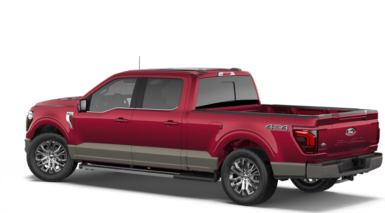 2026 Ford F-150 King Ranch 3.5L V6 EcoBoost 10-Speed Automatic 4WD 4D SuperCrew Ruby Red Metallic Tinted Clearcoat 4WD, 4-Wheel Disc Brakes, 8 Speakers, ABS brakes, Adjustable pedals, Air Conditioning, Alloy wheels, AM/FM radio: SiriusXM with 360L, Auto High-beam Headlights, Auto tilt-away steering wheel, Auto-dimming door mirrors, Auto-dimming Rear-View mirror, Automatic temperature control, Brake assist, Chrome wheels, Compass, Delay-off headlights, Driver door bin, Driver vanity mirror, Dual front impact airbags, Dual front side impact airbags, Electronic Locking with 3.55 Axle Ratio, Electronic Stability Control, Emergency communication system: SYNC 4 911 Assist, Ford Connectivity Package (1-Year Included), Front anti-roll bar, Front Bucket Seats, Front Center Armrest, Front dual zone A/C, Front fog lights, Front reading lights, Front wheel independent suspension, Fully automatic headlights, Garage door transmitter, Genuine wood dashboard insert, GVWR: 7,400 lbs Payload Package, Heated door mirrors, Heated front seats, Heated rear seats, Heated steering wheel, Illuminated entry, Internet access capable: 5G Modem - Ford Connectivity Package, Leather steering wheel, Low tire pressure warning, Memory seat, Navigation system: Connected Navigation, Occupant sensing airbag, Outside temperature display, Overhead airbag, Overhead console, Panic alarm, Passenger door bin, Passenger vanity mirror, Pedal memory, Power door mirrors, Power driver seat, Power passenger seat, Power steering, Power windows, Radio data system, Radio: B&O Sound System by Bang and Olufsen, Rain sensing wipers, Rear reading lights, Rear seat center armrest, Rear step bumper, Rear window defroster, Remote keyless entry, Security system, Speed control, Split folding rear seat, Steering wheel memory, Steering wheel mounted audio controls, SYNC 4 with Enhanced Voice Recognition, Tachometer, Telescoping steering wheel, Tilt steering wheel, Traction control, Trip computer, Turn signal indicator mirrors, Variably intermittent wipers, Ventilated front seats, Wheels: 20 Chrome-Like PVD, 4WD.