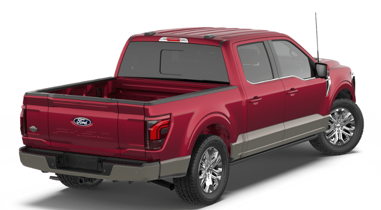 2026 Ford F-150 King Ranch 3.5L V6 EcoBoost 10-Speed Automatic 4WD 4D SuperCrew Ruby Red Metallic Tinted Clearcoat 4WD, 4-Wheel Disc Brakes, 8 Speakers, ABS brakes, Adjustable pedals, Air Conditioning, Alloy wheels, AM/FM radio: SiriusXM with 360L, Auto High-beam Headlights, Auto tilt-away steering wheel, Auto-dimming door mirrors, Auto-dimming Rear-View mirror, Automatic temperature control, Brake assist, Chrome wheels, Compass, Delay-off headlights, Driver door bin, Driver vanity mirror, Driver's Side SecuriCode Keyless-Entry Keypad, Dual front impact airbags, Dual front side impact airbags, Electronic Locking with 3.55 Axle Ratio, Electronic Stability Control, Emergency communication system: SYNC 4 911 Assist, Engine Block Heater, Equipment Group 601A High, Ford Connectivity Package (1-Year Included), Front anti-roll bar, Front Bucket Seats, Front Center Armrest, Front dual zone A/C, Front fog lights, Front License Plate Bracket, Front reading lights, Front wheel independent suspension, Fully automatic headlights, Garage door transmitter, Genuine wood dashboard insert, GVWR: 7,400 lbs Payload Package, Heated door mirrors, Heated front seats, Heated rear seats, Heated steering wheel, Illuminated entry, Internet access capable: 5G Modem - Ford Connectivity Package, Leather steering wheel, Low tire pressure warning, Memory seat, Navigation system: Connected Navigation, Occupant sensing airbag, Outside temperature display, Overhead airbag, Overhead console, Panic alarm, Passenger door bin, Passenger vanity mirror, Pedal memory, Power door mirrors, Power driver seat, Power passenger seat, Power steering, Power windows, Pro Access Tailgate, Radio data system, Radio: B&O Sound System by Bang and Olufsen, Rain sensing wipers, Rear reading lights, Rear seat center armrest, Rear step bumper, Rear window defroster, Remote keyless entry, Retractable Rear Center Step, Security system, Speed control, Split folding rear seat, Steering wheel memory, Steering wheel mounted audio controls, SYNC 4 with Enhanced Voice Recognition, Tachometer, Telescoping steering wheel, Tilt steering wheel, Traction control, Trip computer, Turn signal indicator mirrors, Variably intermittent wipers, Ventilated front seats, Wheels: 20 Chrome-Like PVD, 4WD.
