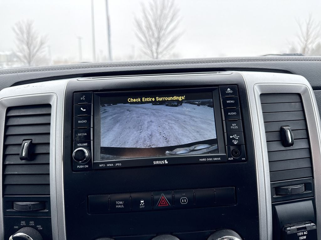 Deep Water Blue Pearlcoat 2011 Ram 1500 Sport 4WD 5-Speed Automatic HEMI 5.7L V8 Multi Displacement VVT 115V Auxiliary Power Outlet, 20 x 9 Chrome Clad Aluminum Wheels, 3.55 Rear Axle Ratio, 30GB HDD w/6,700-Song Capacity, 32 Gallon Fuel Tank, 4-Wheel Disc Brakes, 6 Speakers, 6.5 Touch Screen Display, 9 Amplified Speakers w/Subwoofer, ABS brakes, Air Conditioning, Alloy wheels, AM/FM radio: SIRIUS, Audio Jack Input for Mobile Devices, Auto-dimming door mirrors, Auto-dimming Rear-View mirror, Black Exterior Mirrors, Brake assist, Bumpers: body-color, CD player, Class IV Receiver Hitch, Cloth Bucket Seats, Compass, Delay-off headlights, Driver door bin, Driver vanity mirror, Dual front impact airbags, DVD-Audio, Electronic Stability Control, Exterior Mirrors Courtesy Lamps, Exterior Mirrors Heating Element, Exterior Mirrors w/Supplemental Signals, Folding Flat Load Floor Storage, Front anti-roll bar, Front Bucket Seats, Front Center Armrest w/Storage, Front fog lights, Front reading lights, Front wheel independent suspension, Fully automatic headlights, Garage door transmitter: HomeLink, Heated door mirrors, Heated Front Seats, Illuminated entry, Leather steering wheel, Low Back Bucket Seats, Low tire pressure warning, Navigation System, Outside temperature display, Overhead airbag, Overhead console, Panic alarm, Passenger door bin, Passenger vanity mirror, Power door mirrors, Power driver seat, Power Lumbar Adjust, Power steering, Power windows, Quick Order Package 26L Sport, Radio data system, Radio: Media Center 430 CD/DVD/MP3/HDD, Radio: Media Center 430N CD/DVD/MP3/HDD/NAV (DISC), Rear 60/40 Split Folding Seat, Rear anti-roll bar, Rear step bumper, Remote keyless entry, Remote Start & Security Group, Remote Start System, Remote USB Port, Security Alarm, Speed control, Steering wheel mounted audio controls, Tachometer, Tilt steering wheel, Traction control, Trip computer, Turn signal indicator mirrors, Uconnect® Voice Command w/Bluetooth®, Variably intermittent wipers, Voltmeter.