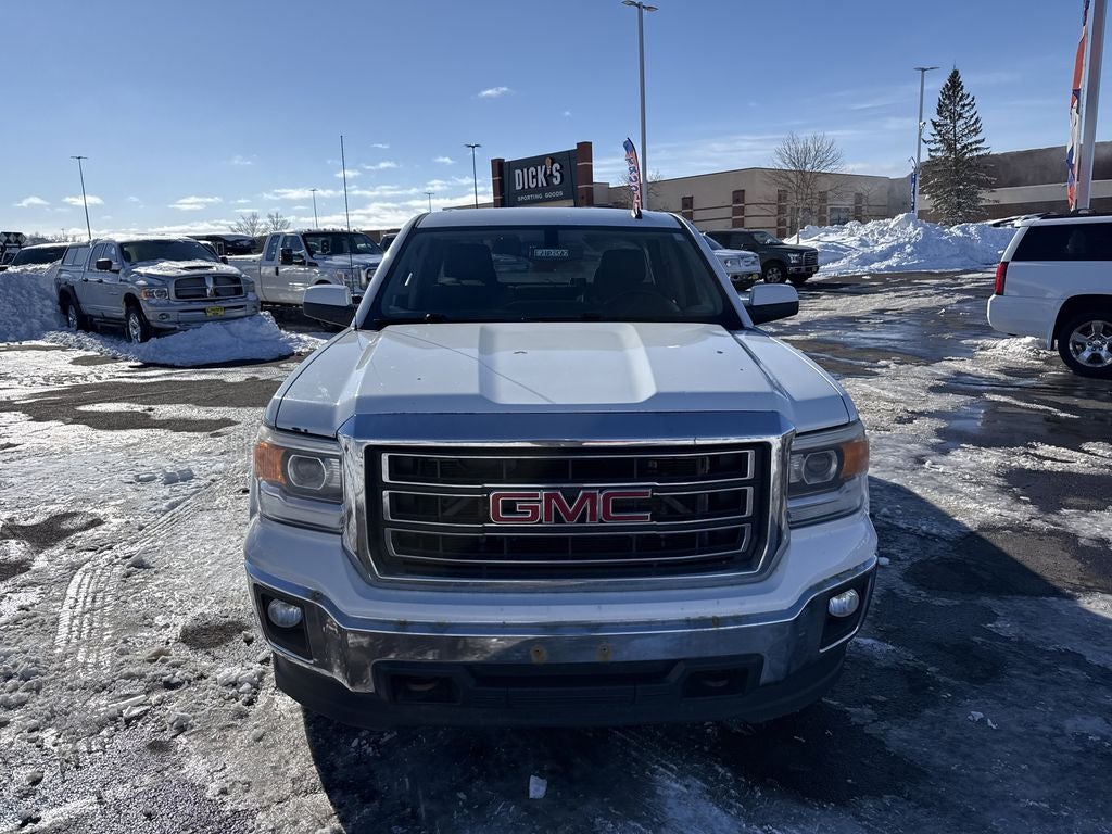 Summit White 2014 GMC Sierra 1500 SLE 4WD 6-Speed Automatic Electronic with Overdrive EcoTec3 5.3L V8 Flex Fuel 6-Speed Automatic Electronic with Overdrive, 4WD, Black Cloth, 10-Way Power Driver's Seat Adjuster, 110-Volt AC Power Outlet, 150 Amp Alternator, 3.42 Rear Axle Ratio, 4-Wheel Disc Brakes, 4.2 Diagonal Color Display Driver Info Center, 40/20/40 Front Split Bench Seat, 6 Speakers, ABS brakes, Air Conditioning, Alloy wheels, AM/FM radio: SiriusXM, Auxiliary External Transmission Oil Cooler, Body Color Bodyside Moldings, Body Color Door Handles, Body Color Power-Adjustable Heated Outside Mirrors, Bodyside moldings, Brake assist, Bumpers: chrome, CD player, Chrome Front Bumper, Chrome Grille Surround, Chrome Rear Bumper, Cloth Seat Trim, Color-Keyed Carpeting w/Rubberized Vinyl Floor Mats, Compass, Deep-Tinted Glass, Delay-off headlights, Driver & Front Passenger Illuminated Vanity Mirrors, Driver door bin, Driver vanity mirror, Dual front impact airbags, Dual front side impact airbags, Dual-Zone Automatic Climate Control, Electric Rear-Window Defogger, Electronic Autotrac Transfer Case, Electronic Stability Control, Emergency communication system: OnStar Directions & Connections, Exterior Parking Camera Rear, EZ Lift & Lower Tailgate, Front anti-roll bar, Front Center Armrest w/Storage, Front Frame-Mounted Black Recovery Hooks, Front Halogen Fog Lamps, Front reading lights, Front wheel independent suspension, Fully automatic headlights, Heated door mirrors, Heavy Duty Suspension, Heavy-Duty Rear Locking Differential, Illuminated entry, Integrated Trailer Brake Controller, Leather Wrapped Steering Wheel w/Cruise Controls, LED Cargo Box Lighting, Low tire pressure warning, Manual Tilt Wheel Steering Column, Manual Tilt/Telescoping Steering Column, Occupant sensing airbag, OnStar 6 Months Directions & Connections Plan, Outside temperature display, Overhead airbag, Overhead console, Panic alarm, Passenger door bin, Passenger vanity mirror, Power door mirrors, Power steering, Power windows, Power Windows w/Driver Express Up, Preferred Equipment Group 3SA, Premium audio system: IntelliLink, Radio data system, Radio: AM/FM Stereo w/8 Diagonal Color Touch Screen, Rear 60/40 Folding Bench Seat (Folds Up), Rear Bumper Cornersteps, Rear reading lights, Rear seat center armrest, Rear step bumper, Rear Vision Camera w/Dynamic Guide Lines, Rear Wheelhouse Liners, Remote Keyless Entry, Remote keyless entry, Remote Vehicle Starter System, Single Slot CD/MP3 Player, Single-Zone Air Conditioning, SiriusXM Satellite & HD Radio, SLE Value Package, Speed control, Speed-sensing steering, Split folding rear seat, Steering Wheel Audio Controls, Steering wheel mounted audio controls, Tachometer, Theft Deterrent System (Unauthorized Entry), Tilt steering wheel, Traction control, Trailering Equipment, Trip computer, Universal Home Remote, Variably intermittent wipers, Voltmeter, Wheels: 17 x 8 Bright Machined Aluminum, 6-Speed Automatic Electronic with Overdrive, 4WD, Black Cloth.
