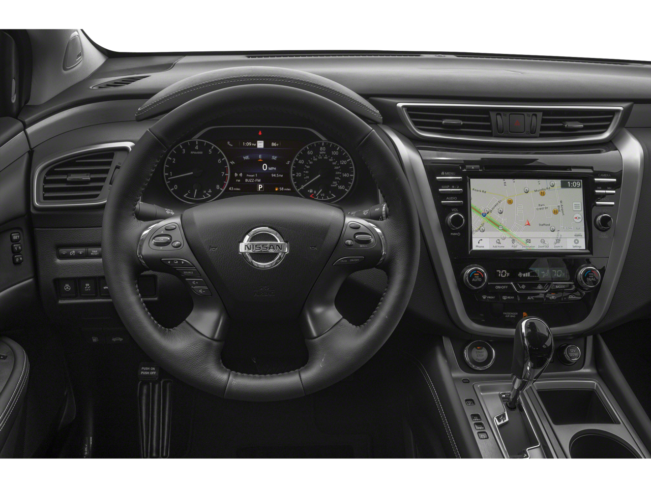 Black 2021 Nissan Murano SV AWD CVT with Xtronic 3.5L V6 DOHC 24V CVT with Xtronic, AWD, 4-Wheel Disc Brakes, 4.667 Axle Ratio, 6 Speakers, ABS brakes, Air Conditioning, Alloy wheels, AM/FM radio: SiriusXM, AM/FM/CD/MP3/WMA Audio System, Auto High-beam Headlights, Auto-dimming Rear-View mirror, Automatic temperature control, Blind Spot Warning, Brake assist, Bumpers: body-color, CD player, Child-Seat-Sensing Airbag, Cloth Seat Trim, Delay-off headlights, Driver door bin, Driver vanity mirror, Dual front impact airbags, Dual front side impact airbags, Electronic Stability Control, Four wheel independent suspension, Front anti-roll bar, Front Bucket Seats, Front Center Armrest, Front dual zone A/C, Front fog lights, Front reading lights, Fully automatic headlights, Heated door mirrors, Illuminated entry, Knee airbag, Low tire pressure warning, NissanConnect featuring Apple CarPlay and Android Auto, Occupant sensing airbag, Outside temperature display, Overhead airbag, Overhead console, Panic alarm, Passenger door bin, Passenger vanity mirror, Power door mirrors, Power driver seat, Power passenger seat, Power steering, Power windows, Radio data system, Rear anti-roll bar, Rear reading lights, Rear seat center armrest, Rear side impact airbag, Rear window defroster, Rear window wiper, Remote keyless entry, Roof rack: rails only, Security system, Speed control, Speed-sensing steering, Speed-Sensitive Wipers, Split folding rear seat, Spoiler, Steering wheel mounted audio controls, Tachometer, Telescoping steering wheel, Tilt steering wheel, Traction control, Trip computer, Turn signal indicator mirrors, Variably intermittent wipers, Wheels: 18 Machined Aluminum-Alloy, CVT with Xtronic, AWD.