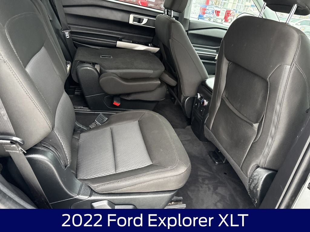 Certified. Iconic Silver Metallic 2022 Ford Explorer XLT 4WD 10-Speed Automatic 2.3L EcoBoost I-4 All Wheel Drive, ** Bluetooth®, Remote Start, Ford Blue Advantage: Blue Certified Certified, 4WD, Class IV Trailer Tow Package, 1st Row Heated Seats, 3.58 Non-Limited-Slip Rear Axle Ratio, 3rd row seats: bench, 4-Wheel Disc Brakes, 4G LTE Wi-Fi Hotspot Removal Credit, 6 Speakers, ABS brakes, Air Conditioning, Alloy wheels, AM/FM radio: SiriusXM, AM/FM Stereo, Auto High-beam Headlights, Auto Start-Stop Removal, Automatic temperature control, Brake assist, Bumpers: body-color, Compass, Delay-off headlights, Driver door bin, Driver vanity mirror, Dual front impact airbags, Dual front side impact airbags, Electronic Stability Control, Emergency communication system: SYNC 3 911 Assist, Engine Block Heater, Equipment Group 200A, Exterior Parking Camera Rear, FordPass Connect, Four wheel independent suspension, Front & Second Row Floor Liners (16A), Front anti-roll bar, Front Bucket Seats, Front Center Armrest, Front dual zone A/C, Front reading lights, Fully automatic headlights, Heated door mirrors, Heated front seats, Illuminated entry, Knee airbag, Leather steering wheel, Low tire pressure warning, Occupant sensing airbag, Outside temperature display, Overhead airbag, Overhead console, Panic alarm, Passenger door bin, Passenger vanity mirror, Power door mirrors, Power driver seat, Power Liftgate, Power passenger seat, Power steering, Power windows, Rear air conditioning, Rear anti-roll bar, Rear reading lights, Rear window defroster, Rear window wiper, Remote keyless entry, Roof rack: rails only, Security system, Speed control, Speed-sensing steering, Speed-Sensitive Wipers, Split folding rear seat, Spoiler, Steering wheel mounted audio controls, SYNC 3 Communications & Entertainment System, SYNC 3/Apple CarPlay/Android Auto, Tachometer, Telescoping steering wheel, Tilt steering wheel, Traction control, Trip computer, Unique Cloth Captain's Chairs, Variably intermittent wipers, Wheels: 18 5-Spoke Silver-Painted Aluminum, 4WD, Class IV Trailer Tow Package.