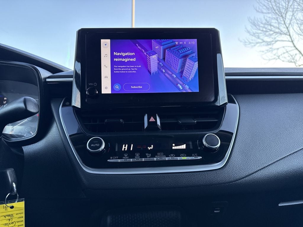 Black 2023 Toyota Corolla LE FWD CVT 2.0L I4 DOHC 16V 4-Wheel Disc Brakes, 6 Speakers, ABS brakes, Air Conditioning, AM/FM radio: SiriusXM, Auto High-beam Headlights, Automatic temperature control, Brake assist, Bumpers: body-color, Delay-off headlights, Driver door bin, Driver vanity mirror, Dual front impact airbags, Dual front side impact airbags, Electronic Stability Control, Emergency communication system: Safety Connect (up to 10-year trial subscription), Exterior Parking Camera Rear, Front anti-roll bar, Front Bucket Seats, Front Center Armrest, Front reading lights, Front wheel independent suspension, Fully automatic headlights, Illuminated entry, Knee airbag, Low tire pressure warning, Occupant sensing airbag, Outside temperature display, Overhead airbag, Panic alarm, Passenger door bin, Passenger vanity mirror, Power door mirrors, Power steering, Power windows, Premium Fabric Seat Trim, Radio data system, Radio: 8 Toyota Audio Multimedia, Rear anti-roll bar, Rear seat center armrest, Rear side impact airbag, Rear window defroster, Remote keyless entry, Speed control, Split folding rear seat, Steering wheel mounted audio controls, Tachometer, Telescoping steering wheel, Tilt steering wheel, Traction control, Trip computer, Variably intermittent wipers, Wheels: 16 Wide Vent Steel.