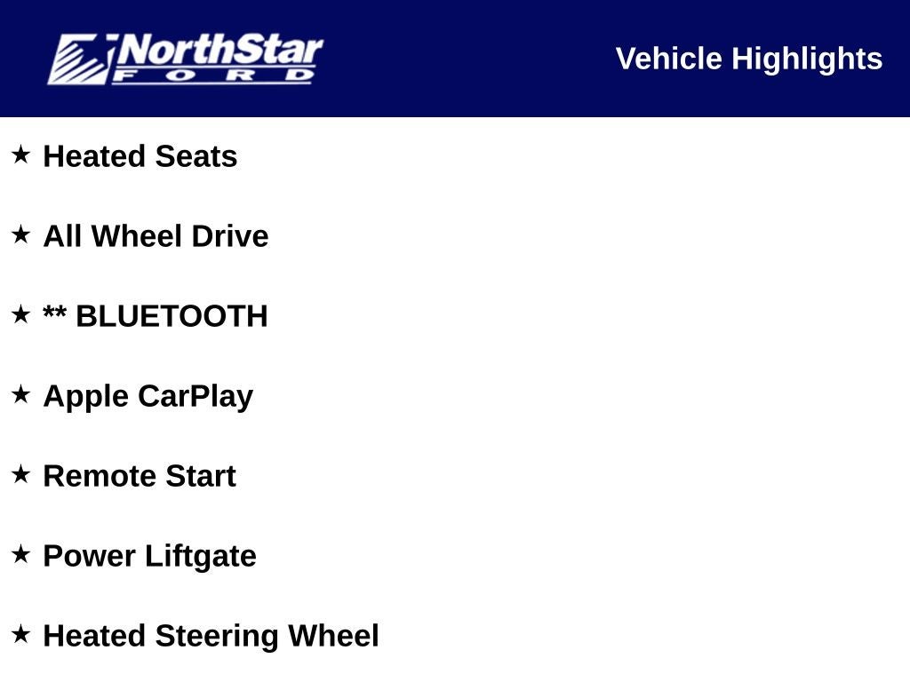 - SYNC 4 -inc: 8" LCD capacitive touch-screen w/swipe capability, wireless phone connection, cloud connected, AppLink w/app catalog, 911 Assist, wireless Apple CarPlay and Android Auto, digital owners manual